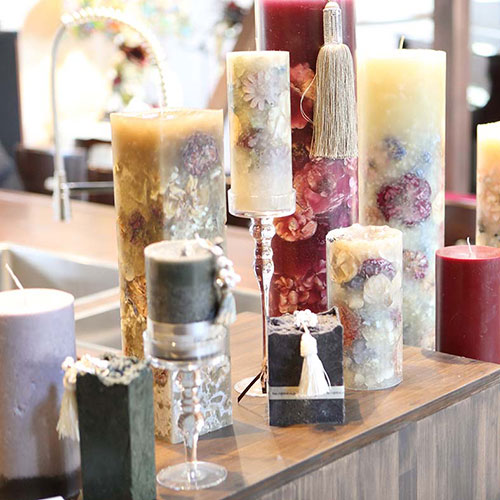 美しい花の姿そのままのボタニカルキャンドルを置くと、そこは安らぎと癒しの空間に。家庭の玄関やリビング、書斎はもちろん、多くの人が行き交う場所にも、やさしい花を咲かせて。